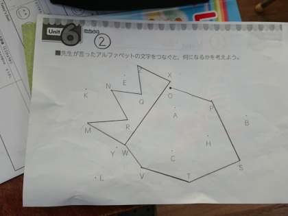 2枚目の写真は、ジョン先生が発音したアルファベットを順番につなぐと、何かの絵が完成します。