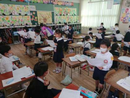 先生の「みんなの前で発表できる人?」に、「はい!!」と、たくさん手が上がりました。