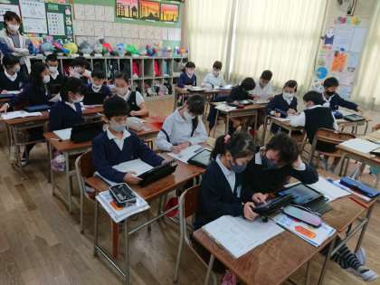 子どもたちは効果的にタブレットを活用しています。