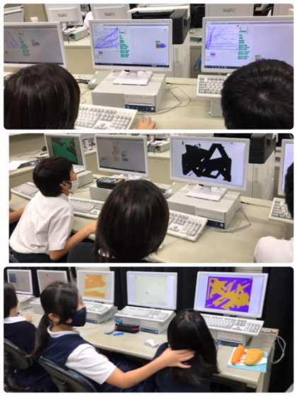 ICTの先生に、パソコン室でプログラミングの授業をしてもらいました。