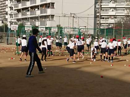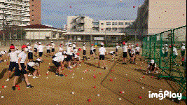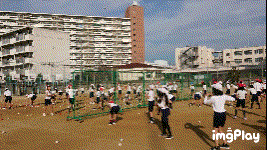 投力を鍛えるためにクラス対抗でボール投げを行いました。
