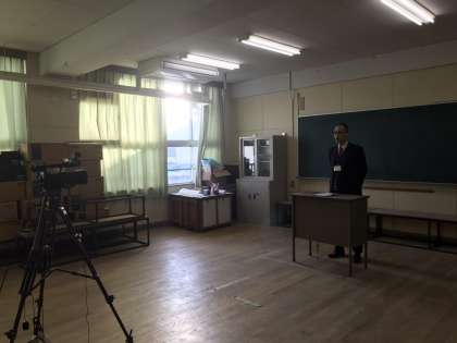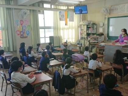 今日の全校朝会はテレビ放送で行いました。