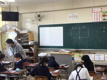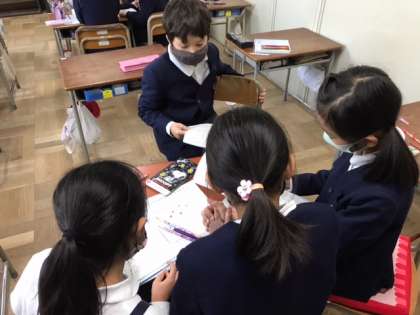 どうやって動くか、どこをねらうか学習カードと色えんぴつを使い、話し合っています。