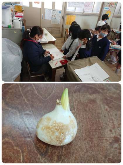チューリップのきゅうこんを観察しました。