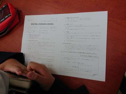 安全で楽しい冬休みを過ごすために、プリントを使って注意点を確認しました。