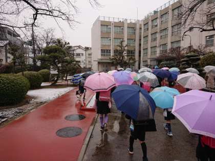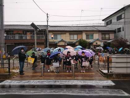 今週はPTAの方々が児童登校の見守りをしてくださっています。