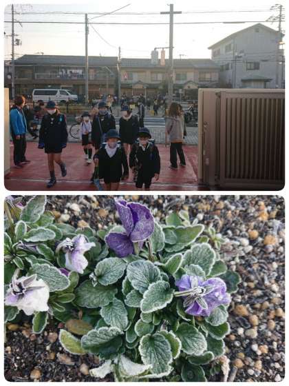 道路が凍結するほど寒い朝となりましたが、子どもたちは元気に登校できました。