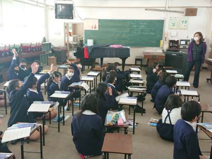 曲を聞いて、「明るい感じ」「楽しそう」との感想がありました。