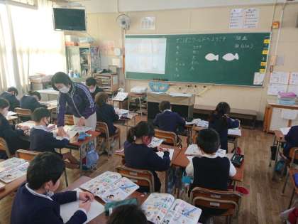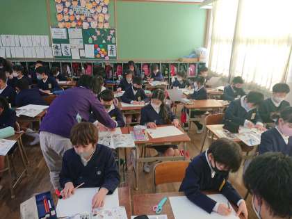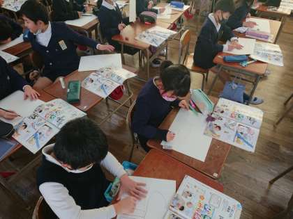 いろいろな材料をはって、でこぼこを作り、版画にします。