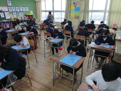 慎重に彫刻刀を扱うため、作業前に黙想をして心を落ち着かせています。