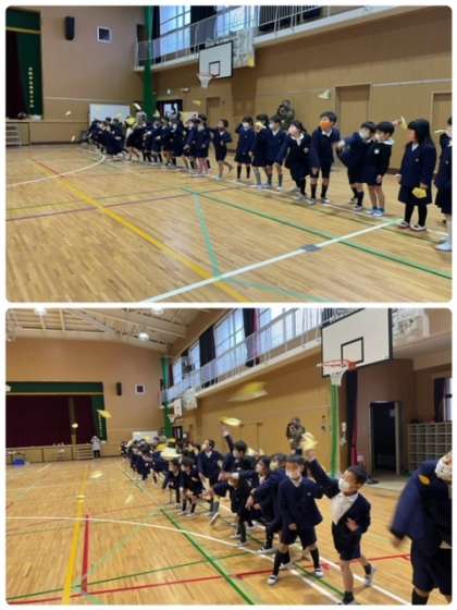 1年生は、紙ひこうき作りです。