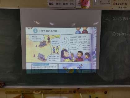 運動場の内側と外側を走る長さは、どれくらい違うかを求めました。