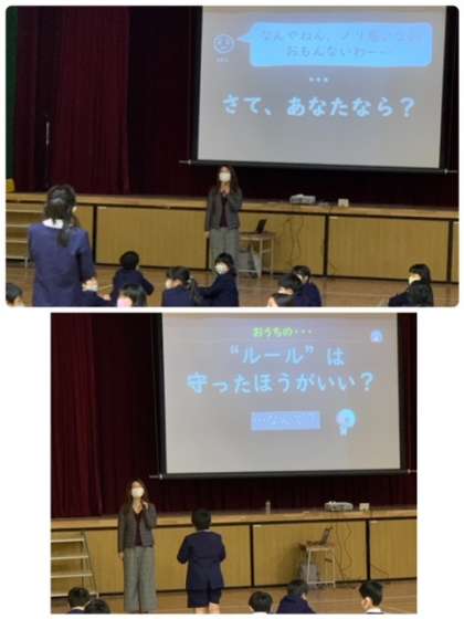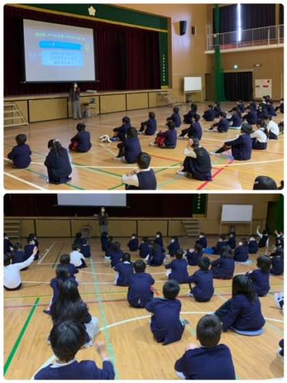 お話の途中には、子どもたちで話し合う場面もあり、自分だったらどうするのかを考えることができました。積極的に意見を発表する姿も見られました。