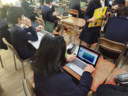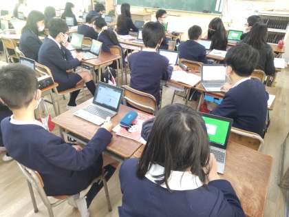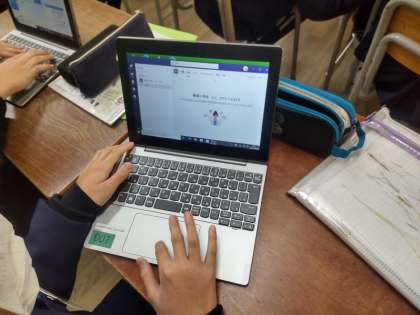 Teamsの設定ができた人から、パソコンをついた使って国語の意味調べを行っています。