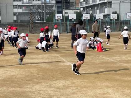 かけ足をがんばる1年生!