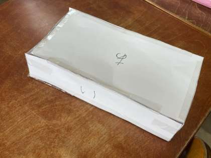 その箱をよく見て、辺の長さや、面の形の大きさ、並び方などについて気づいたことを発表した。