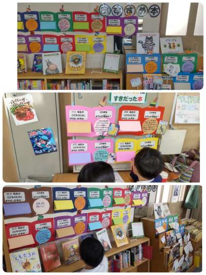 子どもたちは、興味を持っておすすめの本を見ていました。