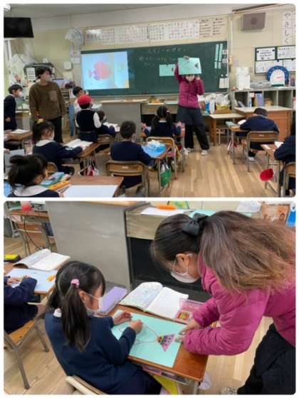 スイミーのお話を読み、オリジナルの魚を描きました。
