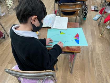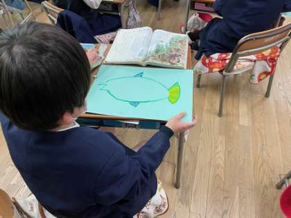 クレパスを使い、色とりどりきれいな魚を描くことができました。