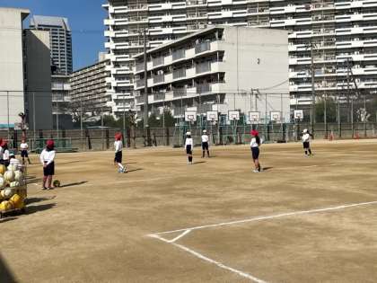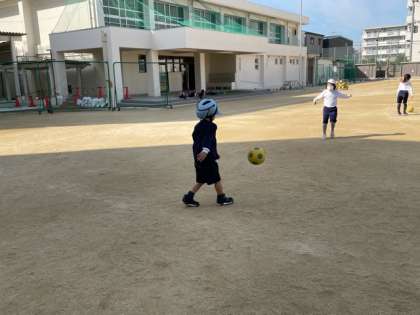 ボールをけり、相手のチームがキャッチして、真ん中の円の中に集まる前に、元にもどれば得点になります。