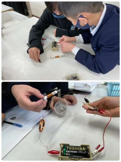 仕組みはわかっていても、実際に電気を流し、磁石になり、クリップがくっつくとみんな驚いていました。
