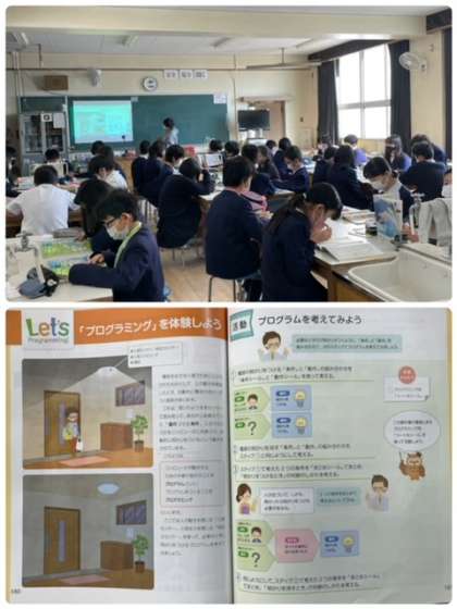 玄関の電気など身近にあるセンサーを通してプログラミング的思考をしました。