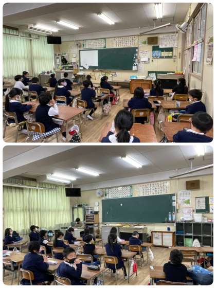 校長先生のお話のあと、代表委員会から朝のあいさつについて、集会担当の先生から3月の生活目標についてのお話がありました。