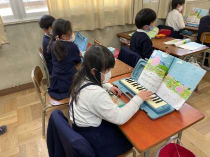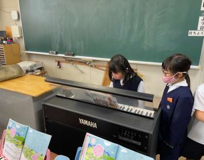 しっかり練習したあとは、電子ピアノを使い、音を出してみて正しく弾けているのかの確認をしました。