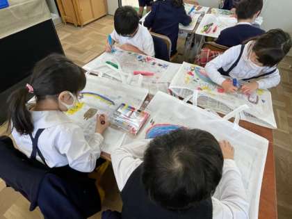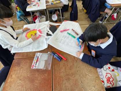 作品袋に絵を描きます。