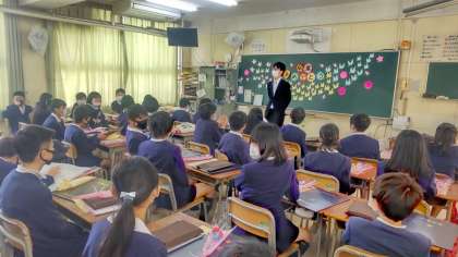 卒業式のあとに、担任の先生との最後の時間を過ごしています。
