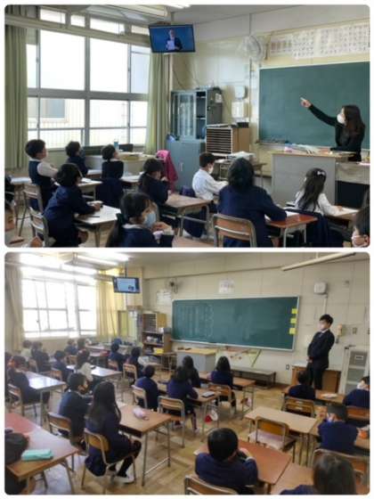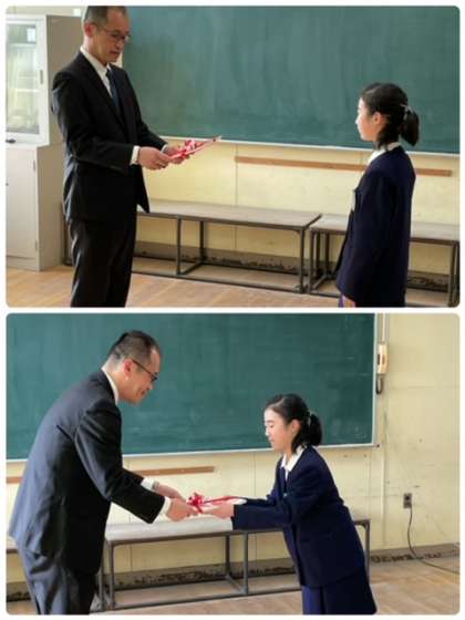全生徒の代表で5年生の児童が、校長先生から修了証をいただきました。