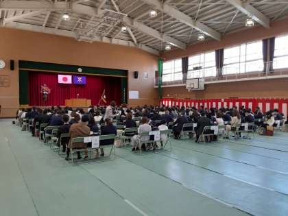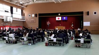 新型コロナウイルス感染症予防の観点から、講堂内で受付をし、挙行しました。