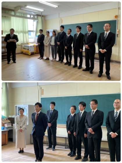 始めに着任式で、新しく来られた教職員の方を紹介しました。みんなと同じくドキドキワクワクで学校に来られています。