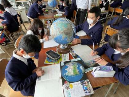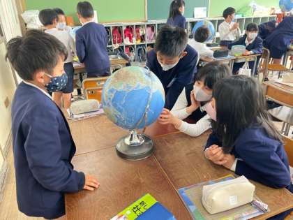 最近はあまり見ることのない地球儀に子どもたちも感動しているようでした。