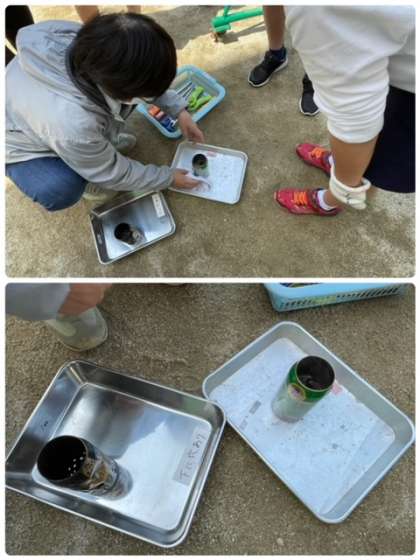 下に穴が空いている空き缶と空いてない空き缶に同じだけのものを入れて燃やすと、さあどうなるのでしょうか?