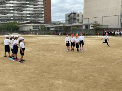 赤と白に分かれ、ジャンケンをし、どんどん勝ち進んで、一番早く相手の陣地に到達すると勝ちになります。