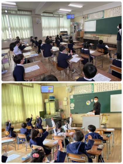今日は、1年生のみなさんに警察の方が来てくださり防犯指導をしていただきました。