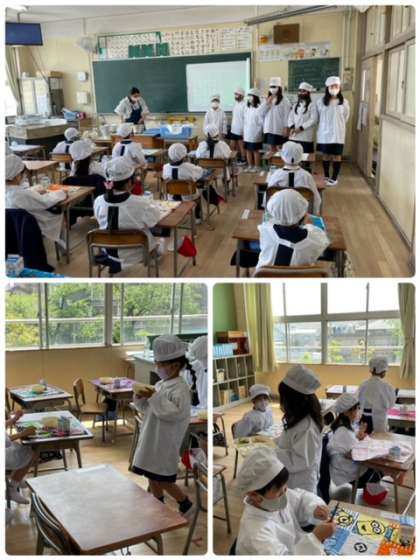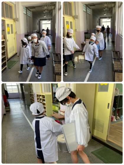 今日から6年生にも手伝ってもらい、給食を取りにいくところから、自分たちでしました。