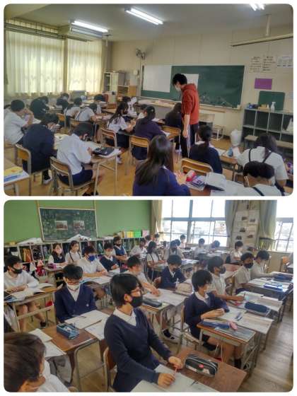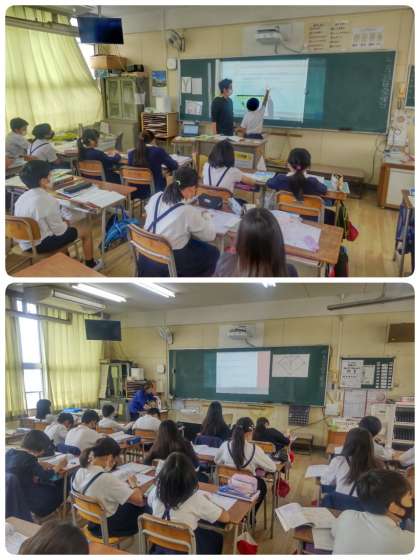 線対称の特徴を考え、コンパスや定規を使って、作図に挑戦しました。
