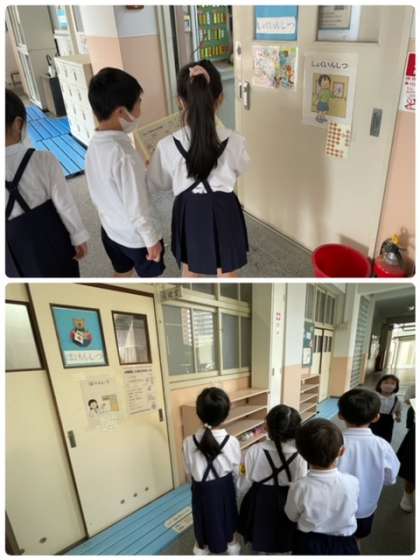 1年生ワクワクドキドキの学校探検です。