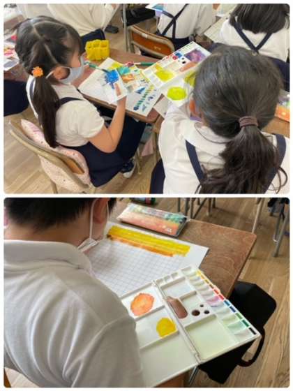 水加減を調節したり、絵の具の混ぜ具合を調節したりして、素敵な作品に仕上げることができました。