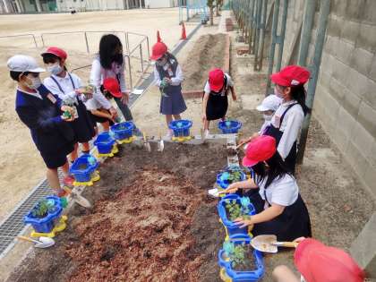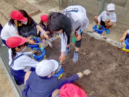 前時に観察したミニトマトを植木鉢に植えました。