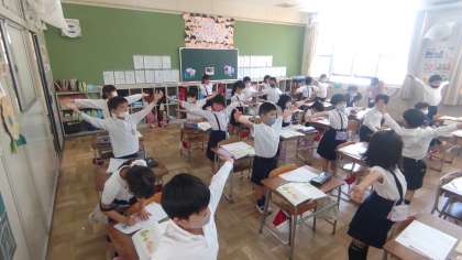 花が咲いてしぼんだあと、たねができるまでを体を使って表現しました。