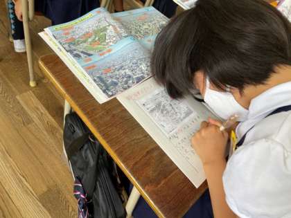 大阪市の周りには何があるのかを教科書を使い、学習しました。