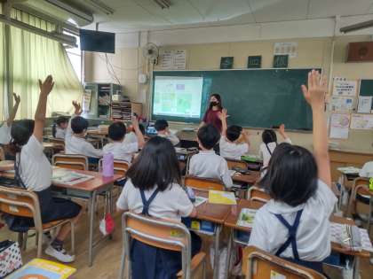3年生では、アゲハチョウの幼虫を飼育しています。