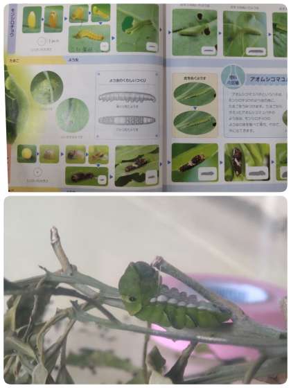 黒い色をしていたアゲハチョウの幼虫は、緑色になりました。
