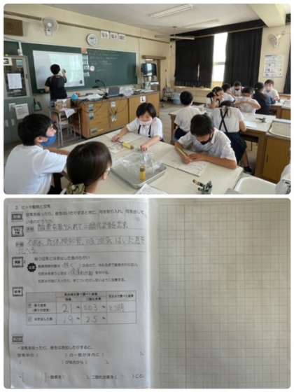 空気をすったり、はいたりするときに、何を取り入れ、何を出しているのかを調べました。
