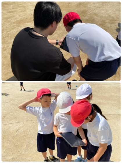 一人一台端末を使い、走るときのフォームを確認しました。