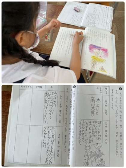 牛やきつねがしたことやそのときの気持ちを教科書から読み取り考えました。