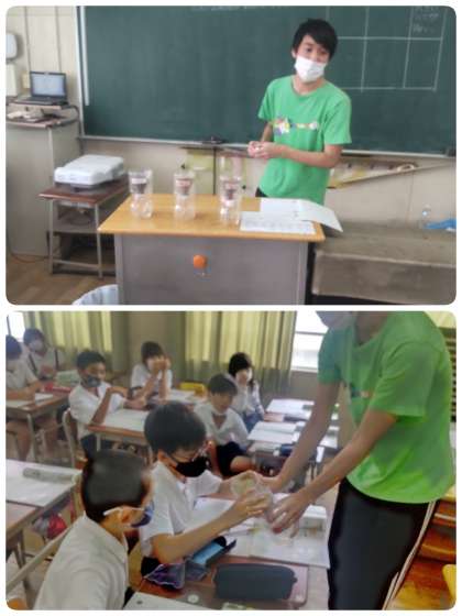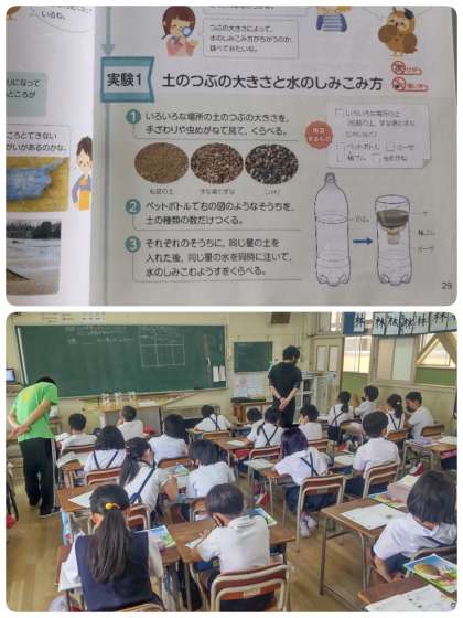 土の種類と水のしみこみ方には、どのような関係があるのかを学習しています。